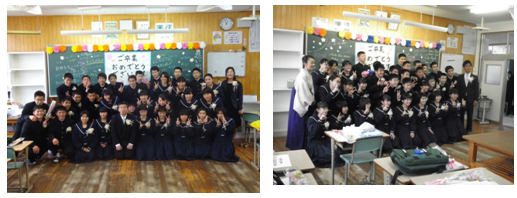 式後の最後の学活では、仲間との別れを惜しみながら、お世話になった方々への感謝の言葉があふれました。涙あり笑いありの、濃密な時間でした。最後は成人式での再会を約束し、笑顔で旅立っていきました。
