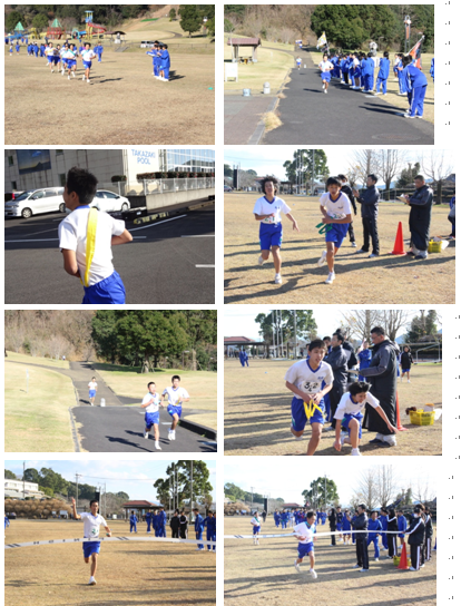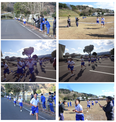 太陽が照る好天でしたが、時折、強風が吹きつけ、寒さの厳しい中での実施でした。生徒たちは寒さに負けることなく、精いっぱい走りきりました。学級の仲間や、保護者の方々の応援が後押しになって、多くの生徒が体育の授業での記録より速く走ることができました。体力はもちろんですが、精神的な支えが大きな力に換わるのだと改めて実感しました。