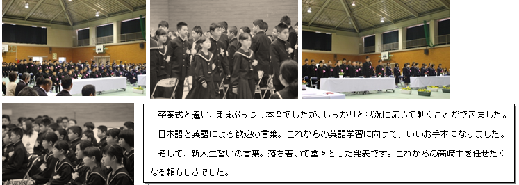 校長先生は、干支「己亥」の亥にちなんだ言葉を紹介され、新しい学期をスタートさせる中学生としての心構えをお話しなさいました。生徒たちは背筋を伸ばして聴いており、前向きな気持ちになることができたようでした。