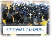 式の後、学習の目標をペアやグループで発表し合い、それぞれの学びの方向性が明確になったようです。「有言実行」になるといいですね。