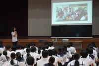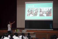 講演では、JICA青年海外協力隊の説明、フィリピンと日本との関係や文化の違い、フィリピンの方との意思疎通のコツ、活動のやりがいなど、生徒の興味を引く話をたくさんしていただき、質問コーナーではたくさんの質問が出されました。
