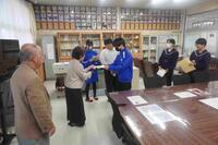 毎日昼休みにはたくさんの生徒が図書室で読書を楽しんでいます。今回寄贈していただいた本も、次の日にはさっそく貸し出されていました。