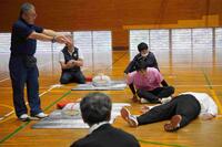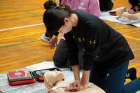 心臓マッサージの方法やAEDの使い方、気を失っている人の搬送の仕方、喉に物を詰まらせたときの対処の仕方など、実演・実習を交えながらたくさんのことをわかりやすく教えてもらいました。