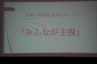 令和6年度の生徒会活動報告や決算報告がなされ、次に令和7年度生徒会活動案の説明で、年間目標や各期間の目標の説明がありました。