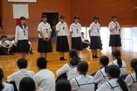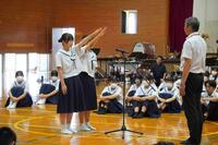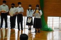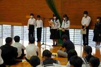送辞では、東来夢さんが先輩方への「感謝」の気持ちを凜とした態度で述べました。それを受けて川東悠莉さんの答辞は3年間を振り返り、こみ上げる思いを抑えながら気持ちを込めて先生方、保護者への「感謝」の気持ちを伝えました。
