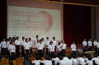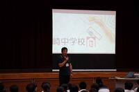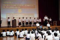 立志式後の記念講演は、フリーアナウンサーの田代 剛さんに「まずは、自分を愛することだよ。」という演題でお話をいただきました。前半印象に残った「暗病反ことば」と「明元素ことば」。立志といえども現代の中学生は思春期で多感な年ごろです。自分をポジティブにするだけでなく、周囲との協調のためにも常に前向きなことばは大切です。一人でも多くの生徒が、田代さんの講演から学んだことを今後の生活に生かしてほしいものです。