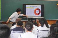 講演では、JICA青年海外協力隊の説明、フィリピンと日本との関係や文化の違い、フィリピンの方との意思疎通のコツ、活動のやりがいなど、生徒の興味を引く話をたくさんしていただき、質問コーナーではたくさんの質問が出されました。