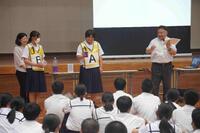 生徒会長の代表あいさつでは、「動画を見て、強い衝撃を受けました。人生を一変させた出来事は、すごい恐怖があったと思います。今日の講演でたくさんの教えを学んだので、誰かのドリー夢メーカーになりたいと思いました。当たり前のことを当たり前にしてくれる人に感謝して、命を大切にしていきたい」と感謝を述べました。
