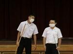 今年度の生徒総会は、新型コロナ感染症対策としてできるだけ密にならないように、前半と後半に分け、前半では、全校放送を使ったり、各学年に生徒会執行部が付き、トランシーバーで連絡を取り合ったりして、生徒会の決算報告や、各種委員会の活動報告、質問や要望についての回答をしました。いつもの生徒総会とは違うやり方でしたが、一生懸命にしていました。