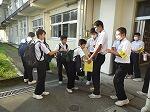 12日(水)から3日間、生徒会の皆さんが、ただあいさつ運動をするだけでなく、笑顔あふれるものにしたいという願いをこめて、『今日もいいことあるかなあいさつ運動』を行いました。