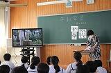 今回は、都城市内外で語り部として活動されている藤田悦子様を講師に招き、「戦争体験講話」をしていただきました。講話では、前半、太平洋戦争の状況を生々しい映像とともに説明してくださり、後半は自らの戦争体験をもとに、当時のお手紙や召集令状のコピーなどの貴重な資料を提示しながら、自分の身のまわりで起こったリアルな戦争について、わかりやすくお話していただきました。生徒たちは、終始真剣な態度で藤田さんのお話に耳を傾けました。帰り際に「素晴らしい生徒さんたちですね。」とのお褒めの言葉をくださり、12月の修学旅行で訪れる広島に向けて意義のある学習となりました。