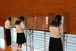 次に、清掃の仕方について良い例と良くない例を、生徒会役員が実演して見せてくれました。