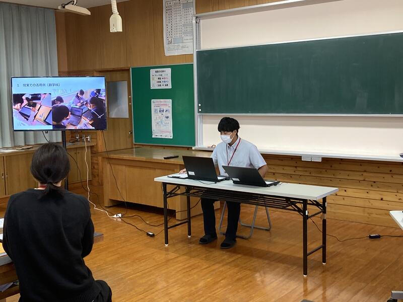 8月22日(火)に高崎中と縄瀬小合同でGIGAスクールミーティングを行いました。まず、はじめに高崎中・縄瀬小による「クロームブックの活用状況」についての発表を行いました。