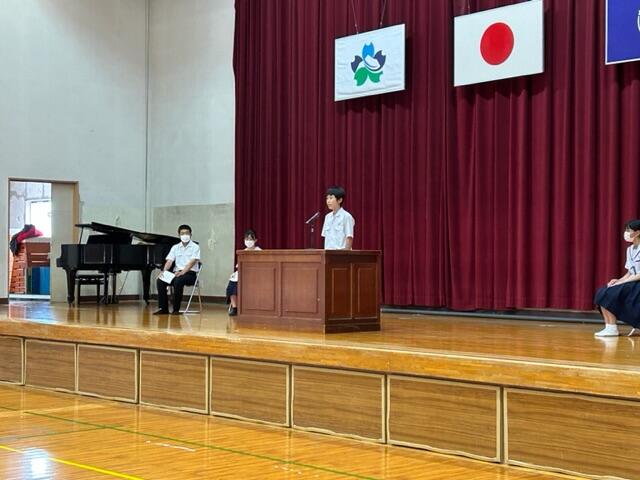 6月21日(水)、全校集会を行いました。全校集会では、生徒会役員が中心となり委員会からの連絡や学校全体で取り組むことを発表します。