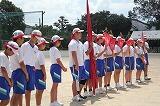 その後、団編成と団色決定を行いました。各団の団長と副団長、3年生のリーダー、3年生の先生方が障害物競走を行い、ペットボトルを選ぶ順番を決めました。選んだペットボトルを振ると、色がでてきて団色が分かりました。
