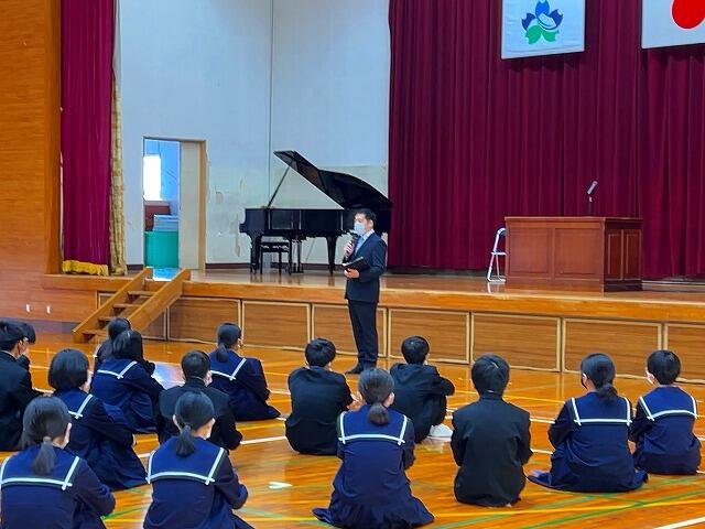 4月12日、全校オリエンテーションを行いました。前半は集団行動や学校でのルールについての説明、後半は清掃についての説明を行いました。
