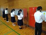 終業式では、各学年と生徒会代表による2学期の反省と校長先生の話があり、その後、担当の先生方から、冬休み中の学習面、保健面、生活面についての指導と、生徒用PC持ち帰りの注意事項と確認を行いました。
