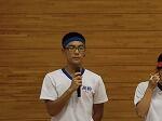 前半は各団ごとに応援練習をし、その後各団の団長、副団長、体育大会実行委員長、副委員長が全校生徒の前で挨拶をしました。