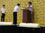 終業式の前に、表彰や特別委員会(図書・放送委員会)の新旧挨拶がありました。