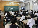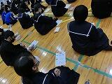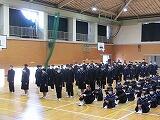 終業式では、各学年と生徒会代表による2学期の反省と校長先生の話があり、その後、担当の先生方から、冬休み中の学習面、保健面、生活面についての指導と、生徒用PC持ち帰りの注意事項と確認を行いました。