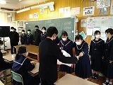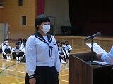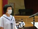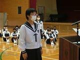 1・2年生と生徒会から各1名ずつ、代表が今年度の振り返りと次年度への目標を発表しました。その後、各学年への修了証の授与を行いました。また、学習面、保健面、生徒指導面での確認が担当の先生方からありました。