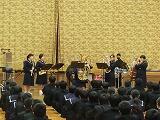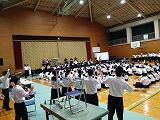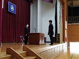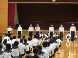 終業式の前に、25日に行われるアンサンブルコンテストに向けての吹奏楽の演奏、部活動やコンクールの表彰、特別委員会の新旧挨拶が行われました。