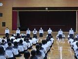 橘太鼓「響座」を招いての記念講演では、会場に響く迫力のある演奏が、立志式を迎えた2年生たちの心に感動を残しました。講演では実際に太鼓を叩く体験もあり、先生たちも交えて、普段触れることの少ない太鼓を興味津々に叩いていました。
