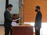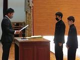 生徒会役員認証式では、任命証の授与がありました。新生徒会役員の皆さんには、責任ある立場の人間として、楽しいことや大変なことがこれから待っていると思います。その中で、先輩たちから受け継ぎ、繋いできた高崎中学校の伝統をさらに素晴らしいものにしてくれることを期待しています。