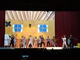 午前の部は1年生の「屋根裏チュー学校」から始まりました。ネズミの学校で起こるトラブルと、それを解決していく中ではぐくまれる友情と成長の物語を、可愛らしい衣裳に身を包んだ1年生たちがユーモアたっぷり演じてくれました。