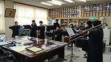 校歌斉唱(新しい指揮者と伴奏者の2人です♪)