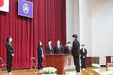 本日、地区大会や各コンクールの表彰式、県大会・地区駅伝大会の推戴式が行われました。