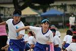 前半は各団ごとに応援練習をし、その後各団の団長、副団長、体育大会実行委員長、副委員長が全校生徒の前で挨拶をしました。