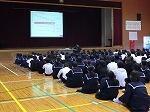 そのあと体育館に移動し、資料を使って説明していただき、火災が起きたときの避難への理解をさらに深めました。