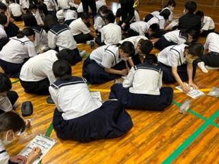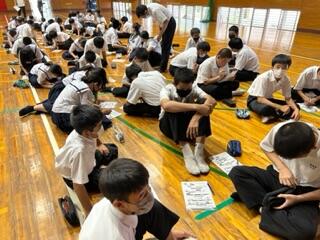 北校舎が土砂災害の警戒区域に入っている本校。防災についての動画を視聴したり、非常時持ち出し品の準備チェック、我が家の防災・緊急情報メモを記入しました。今回、住所や緊急の連絡先、家族で約束している避難先が言えなかったり、書けなかったりした人もいましたので、しっかり覚えていきましょう。