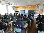 5・6校時の対面式では、はじめに全校放送で生徒会の仕組みを生徒会役員が説明しました。