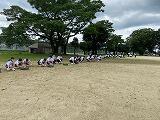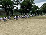保健体育委員会の取り組みで、各学年ごとに昼休み時間の15分を使い、グラウンド整備を行っています。