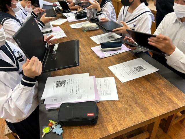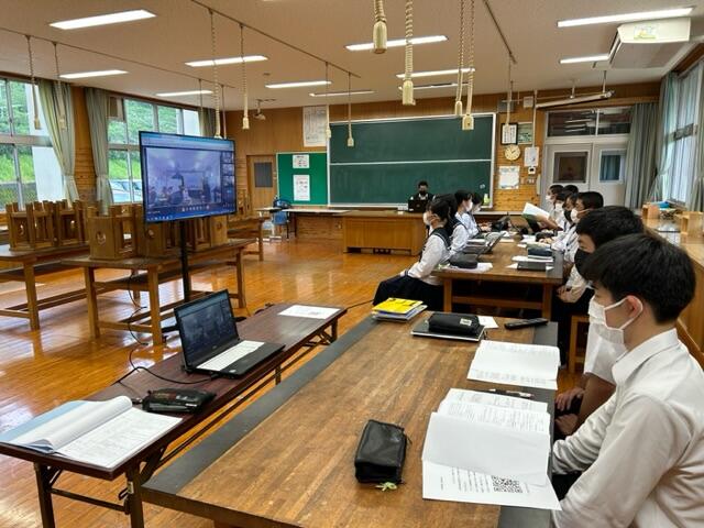 高崎中学校では、生徒会役員が話し合いの司会進行や準備等を行いました。各学校で取り組みたい事項を発表し、最後はGoogle Formsを使って、実践事項を決めました。