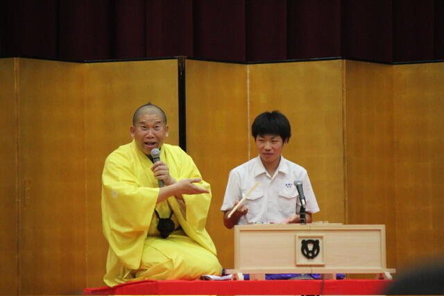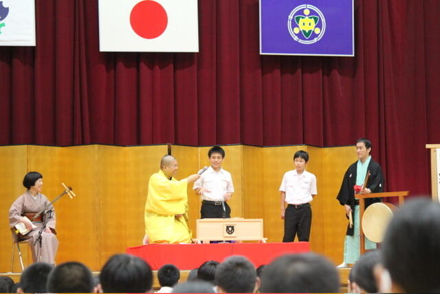 代表生徒も参加し、場を盛り上げてくれました。日本の伝統芸能である落語を身近に感じるすばらしい機会になりました。