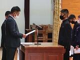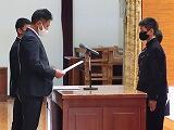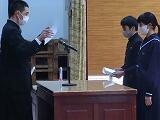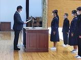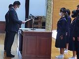 新生徒会執行部の任命式、各全校専門委員会委員長・副委員長の任命式、新生徒会長の挨拶、旧生徒会役員からの言葉、感謝状授与、校長先生からのお話がありました。