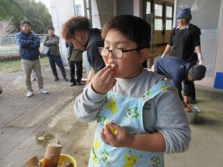 地域の方と一緒に「いただきます!」 笛水の方は、子どもたちに優しくたくさん話しかけてくださいます。
