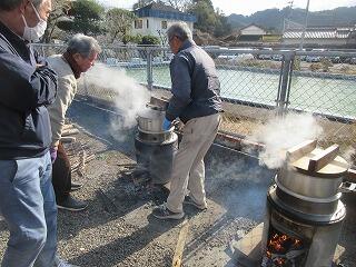 外ではそばつゆ作りの準備で、まずは薪を用意しています。