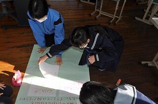 今度の餅つき体験で、地域の方たちにプレゼントする「ヘチマたわし」を3、4年生が作っていました。
