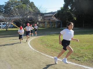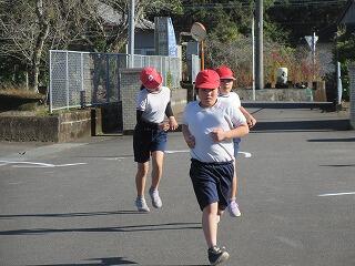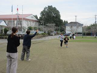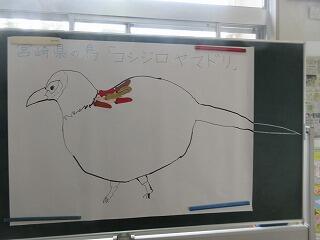 運動場を走った周の数だけ、宮崎県の鳥「コシジロヤマドリ」に羽根を付けていきます。寒くなるので、羽根でいっぱいにしてあげましょう。