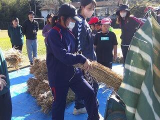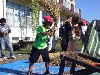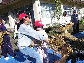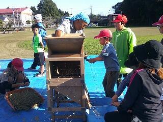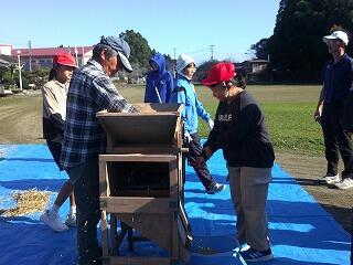 米作り体験で、先日刈った稲の脱穀をしました。「笛水活性化委員会」「笛水環境保全協議会」の方々には、事前の準備をしていただき、この日を迎えることができました。