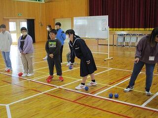 家庭教育学習の人権学習として講師の先生を招いてボッチャ体験を行いました。ボッチャという競技は、年齢、性別、障がいのあるなしに関わらず、すべての人が一緒にできるスポーツです。