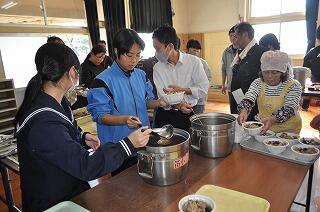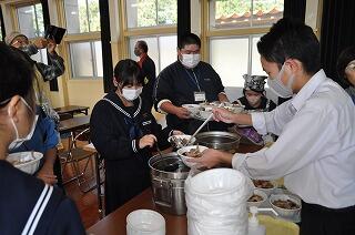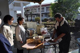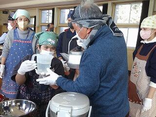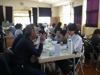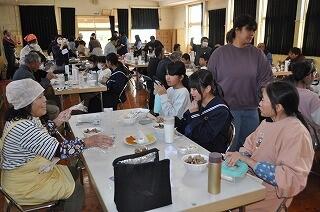 地域の方と一緒に「いただきます!」 笛水の方は、子どもたちに優しくたくさん話しかけてくださいます。