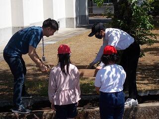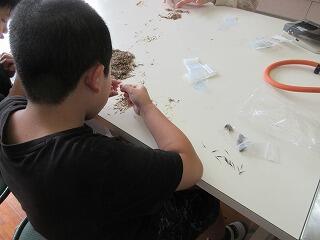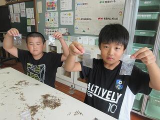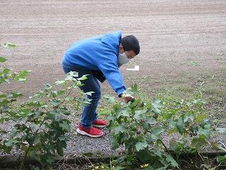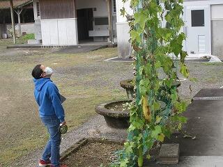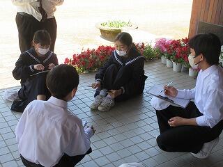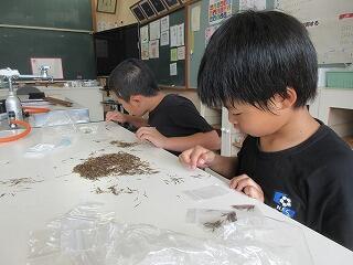 4年生の理科です。「秋を探そう」というテーマで、校内の秋を探していました。