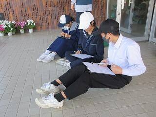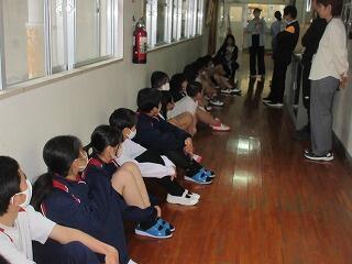 避難後には、生徒指導担当から、様々な場所で地震に遭うことを想定して、その際の避難について、子どもたちと一緒に考えました。