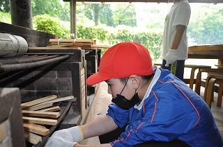 外ではそばつゆ作りの準備で、まずは薪を用意しています。