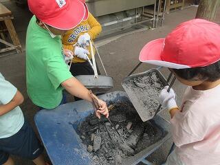 みどりの少年団の時間に、今まで耕してきた花壇に芋の苗を植えました。